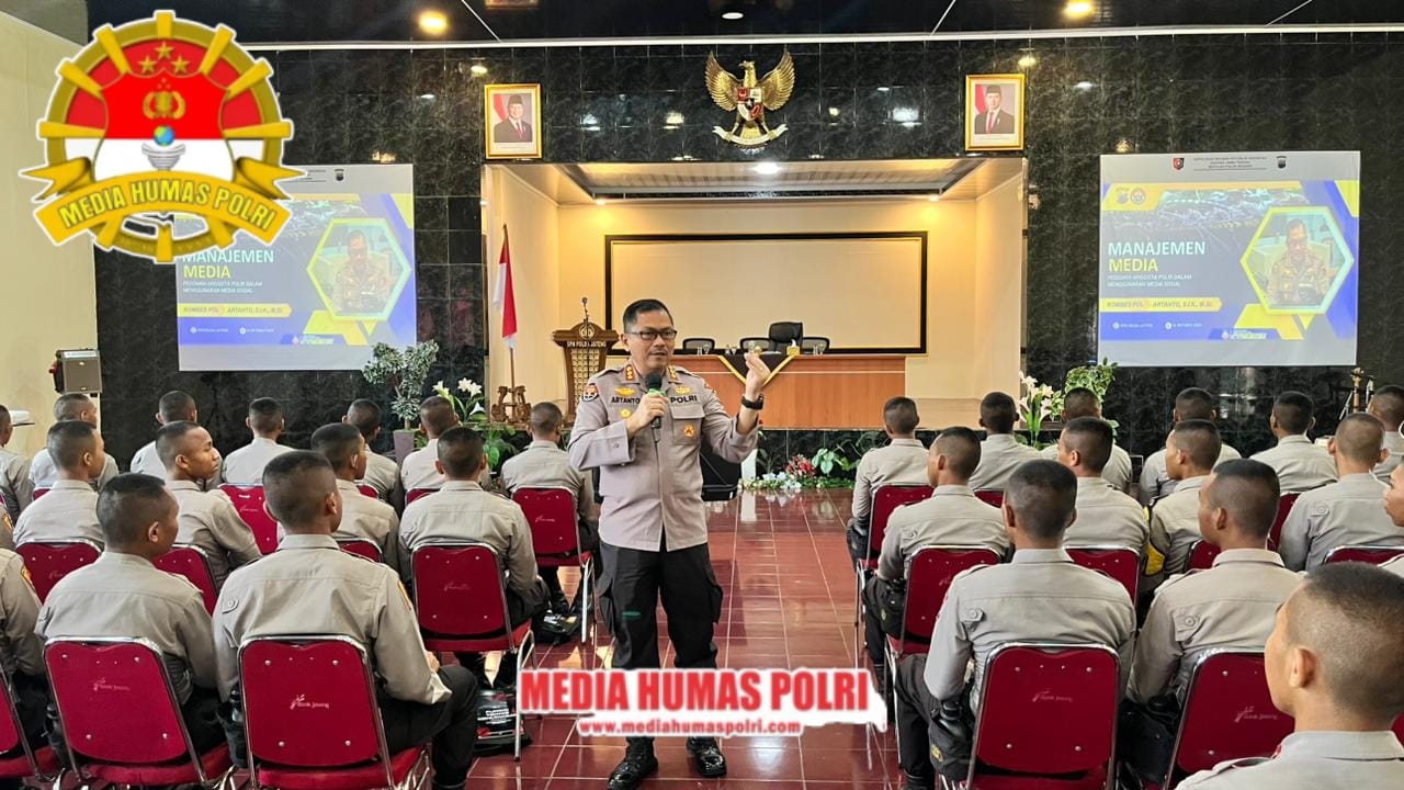 Guna memperkuat kemampuan komunikasi dan pemahaman anggota Polri di era digital, Kabidhumas Polda Jawa Tengah Kombes Pol Artanto, S.I.K., M.Si. memberikan arahan manajemen media dan pelatihan e-learning kehumasan kepada para siswa Sekolah Polisi Negara (SPN) Polda Jateng, pada Kamis (16/10/2025), bertempat di Aula SPN Polda Jateng.